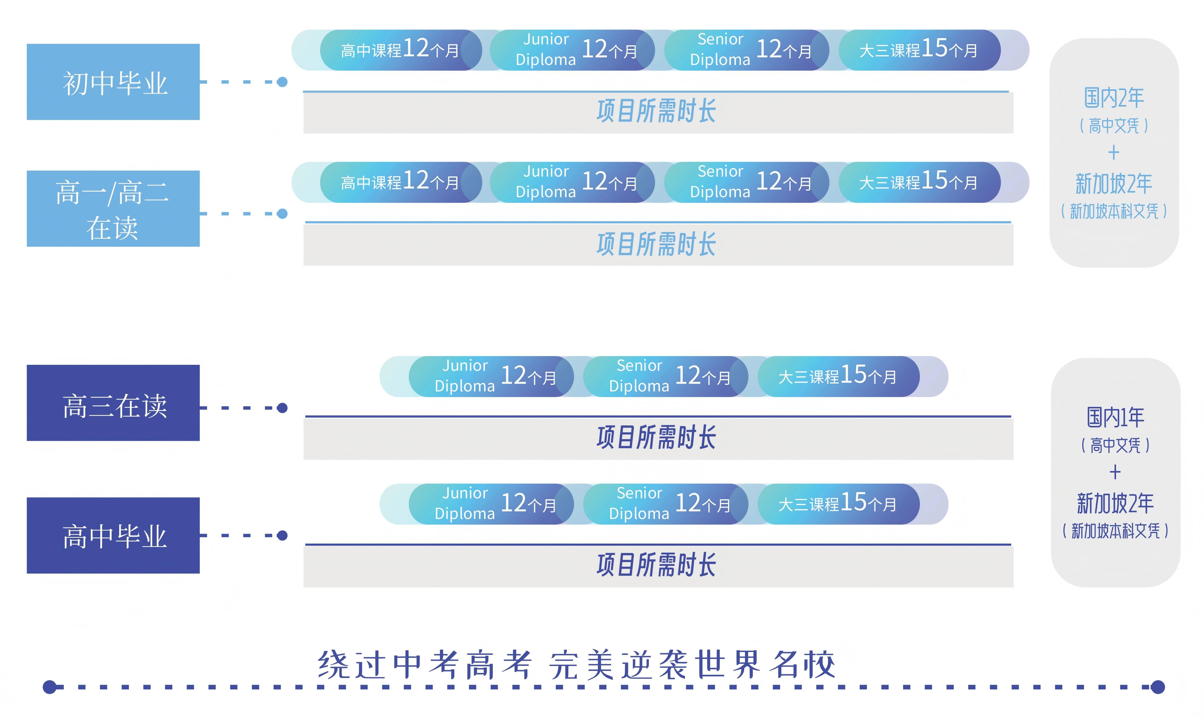 学生在读高三的课程的期间,可以同时就国际预科班。该班课程包含了大学预科课程、英国文凭课程、语言及相关大学专业课程。可以在国内就帮助我们的学生夯实一定的英语基础,同时获得相关的专业学分。为以后前往海外深造及生活打好良好的基础。
